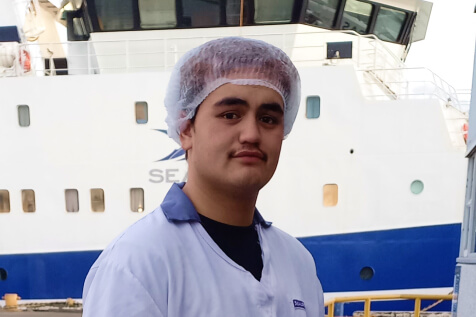 Cody worked in the freezer on the vessel, which involves a lot of stacking boxes, a physical job he says he’s grateful for because he likes the food aboard a lot! While the vessel was tied up, he took up the opportunity to get some extra hours working at Sealord’s land-based wet fish factory in Nelson. As well as doing the night shift on the processing line, he joined the cleaning crew that works until at 5.30am.