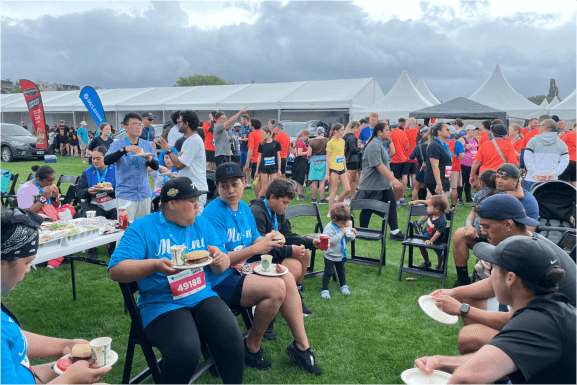 He hinonga ā-tau te Huri i ngā Whanga ki Tāmaki Makaurau, te rekaina nei e ngā kaimahi a Moana. Ahakoa kāore te huarere i tino tautoko i te rā whakataetae, i ū tonu te hunga o Moana ki te oma, te hīkoi me te takahi i te ara e 8.4km te roa i te taha o te whanga o Waitematā, ka kai tahi ai i te BBQ i te mutunga.