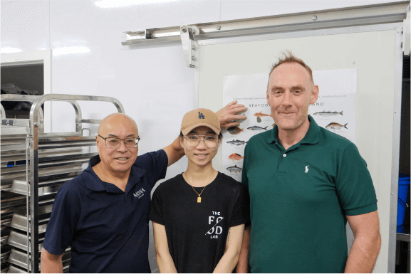 Stuart Wong (left) of Moana New Zealand Wellington with Fifi Liang (centre), Executive Chef Charley Noble, and Darren Shead (right), Executive Chef of the Food Lab